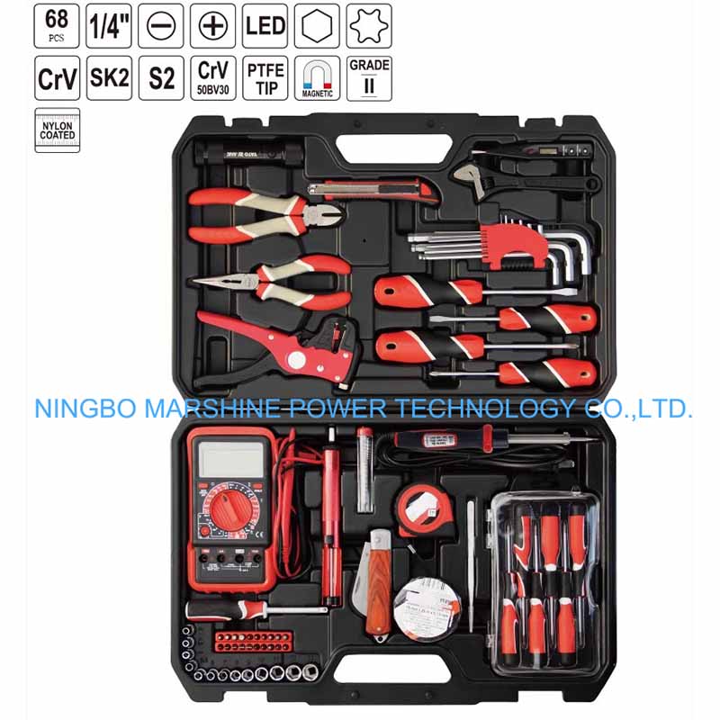 ด้วยคีมอเนกประสงค์ 68 ชิ้น, ไขควง, ลวดลวด, เครื่องทดสอบแรงดันไฟฟ้า, คีมจีบ, การวัดเทป, เครื่องมือวัด, ฯลฯ ชุดเครื่องมือมือช่างไฟฟ้า 68 ชิ้นนี้สามารถจัดการกับการใช้ชีวิตส่วนใหญ่ในชีวิตประจำวัน เคสที่แข็งแกร่ง แต่กะทัดรัดพร้อมช่องว่างที่เป็นระเบียบเพื่อให้เข้าถึงได้ง่ายและง่ายต่อการพกพา การออกแบบที่จับนั้นสะดวกสบายและเป็นมิตรในการลดความเหนื่อยล้าที่เกิดจากการใช้ประโยชน์ซ้ำ ๆ ทำจากเหล็กโครเมี่ยมวานาเดียมและวัสดุที่ทนทานชุดเครื่องมือนี้แข็งแกร่งและทำงานเป็นเวลานาน