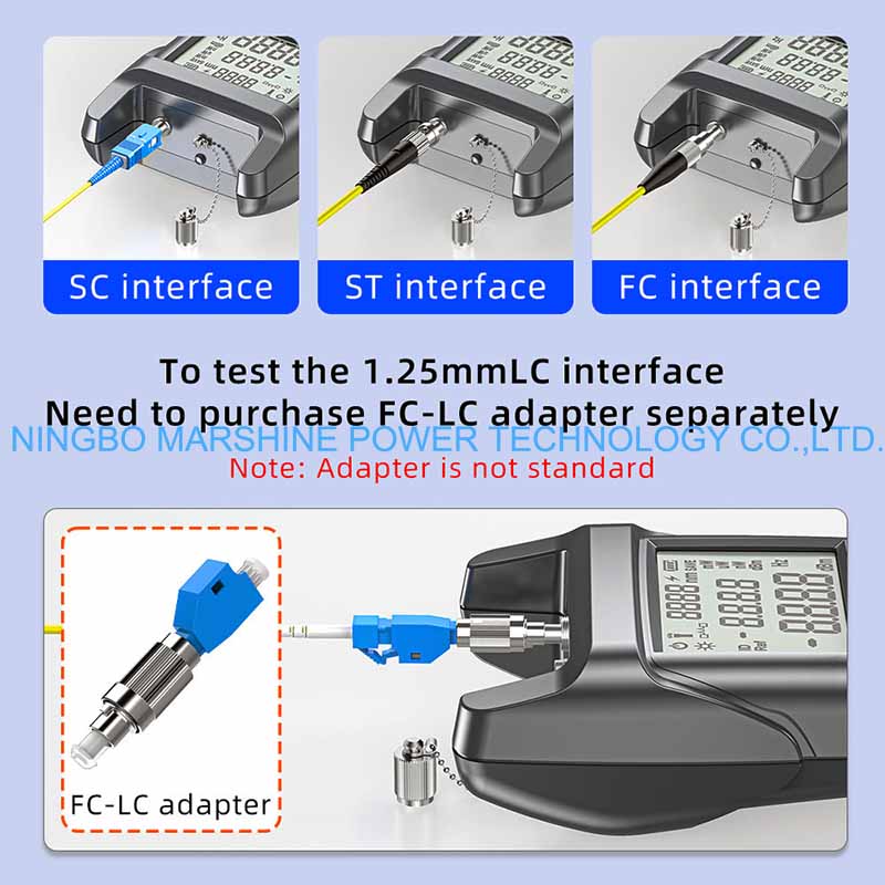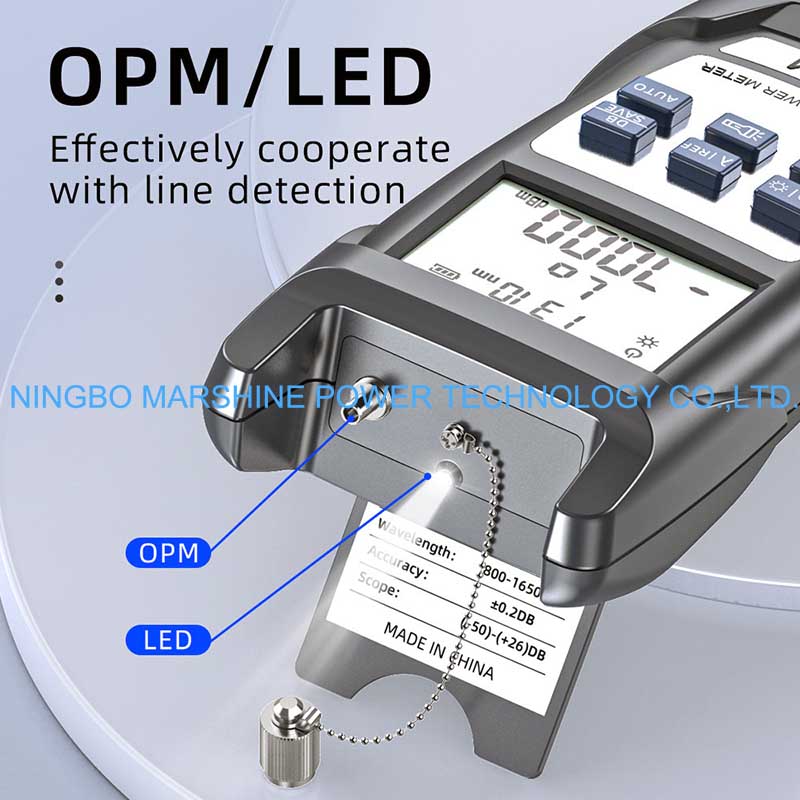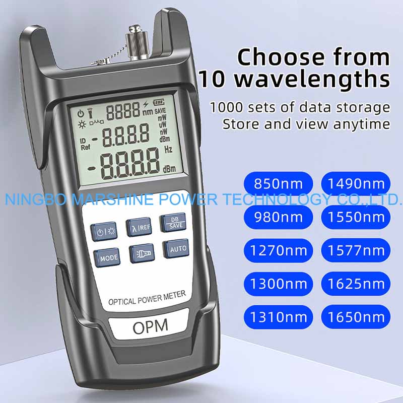 เครื่องทดสอบ OPM ของเครื่องมือแก้ไขปัญหาไฟเบอร์ออปติก MARSHINE สามารถใช้ทดสอบที่ความยาวคลื่นแสงมาตรฐานทั้งหมดของเครือข่ายไฟเบอร์ (เช่น 850nm, 1310nm, 1490nm และ 1550nm) ใช้ได้กับทั้งโหมดหลายโหมดและโหมดเดียว