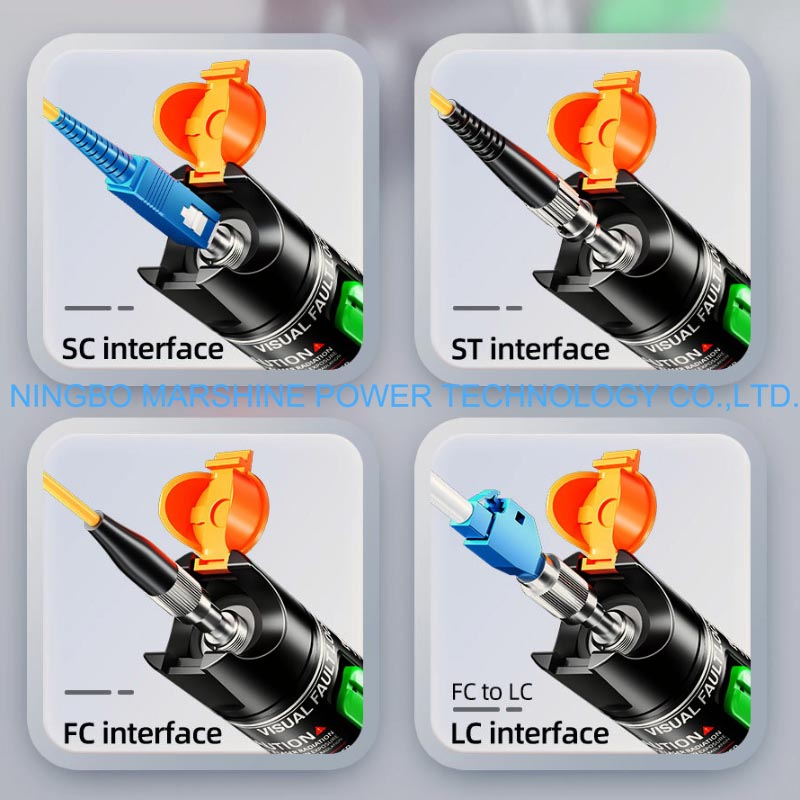 MARSHINE Fiber Optical Visual Fault Locator นี้เป็นเครื่องมือวินิจฉัยแบบปากกาขนาดพกพา เพื่อการค้นหาข้อบกพร่องของไฟเบอร์ออปติกที่รวดเร็วและใช้งานง่าย โดยจะฉายแสงเลเซอร์สีแดงที่มองเห็นได้ชัดเจนลงไปที่แกนไฟเบอร์ ดังนั้นการแตกหัก โค้งงอ ขั้วต่อที่ไม่ดี หรือความไม่ต่อเนื่องอื่นๆ สามารถมองเห็นได้ด้วยตาเปล่าทันที อุปกรณ์นี้เป็นตัวเลือกที่เหมาะสมสำหรับช่างเทคนิคนอกสถานที่และผู้ติดตั้งเครือข่ายที่ต้องการตรวจสอบความต่อเนื่องและความสมบูรณ์ของไฟเบอร์อย่างรวดเร็วโดยไม่ต้องใช้อุปกรณ์ที่ซับซ้อน เนื่องจากมีขนาดเล็กและการออกแบบที่ใช้งานง่าย